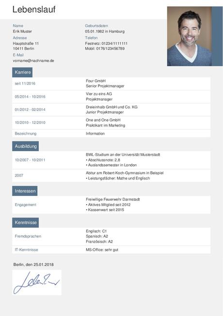Lebenslauf Muster Und Vorlagen Zum Runterladen