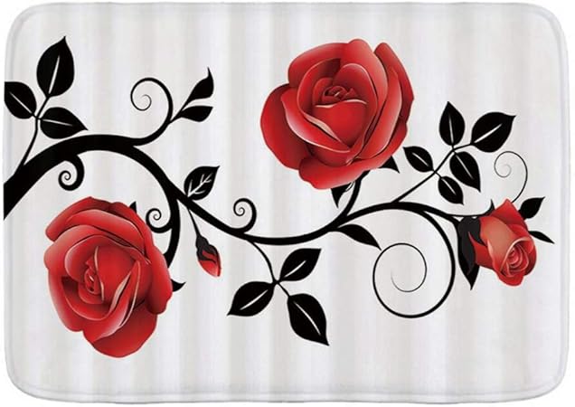 Patrickogden Badematte Bad Teppiche Floral Flower Concise Style Rote Rose Schwarzer Zweig Weisser Hintergrund Mit Rutschfester Ruckseite 29 5 X 17 5 Amazon De Kuche Haushalt