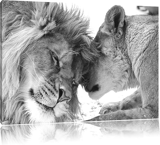 Bezauberndes Kuschelndes Lowenpaar Schwarz Weiss Format 100x70 Auf Leinwand Xxl Riesige Bilder Fertig Gerahmt Mit Keilrahmen Kunstdruck Auf Wandbild Mit Rahmen Gunstiger Als Gemalde Oder Olbild Kein Poster Oder Plakat Amazon De Kuche