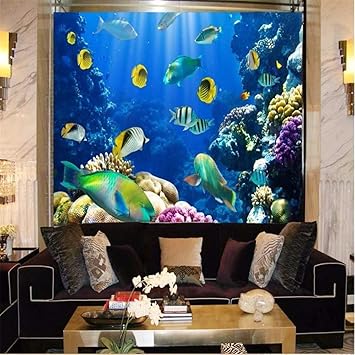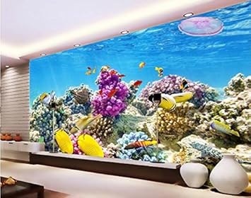 Chan Mei 3d Raum Tapete Benutzerdefinierte Wandbild Wandaufkleber Unterwasserwelt Tropischer Fisch Coral Aquarium Foto 3d Wandbilder Tapeten Hintergrundbild Tapete Fresko Wandmalerei 400cmx300cm Amazon De Baumarkt