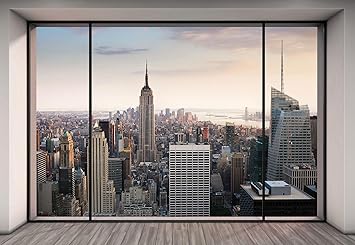 Welt Der Traume Fototapete Tapete Wandbild New York Panorama Aussicht P8 368cm X 254cm Photo Wallpaper Mural 3306p8 Ms Stadt New York Wolkenkratzer Tarrasse Fenster Amazon De Kuche Haushalt