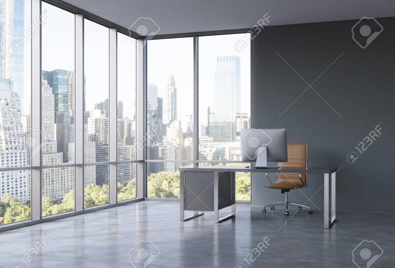 A Workplace In A Modern Corner Panoramic Office With New York Stock Photo Picture And Royalty Free Image Image 48275672