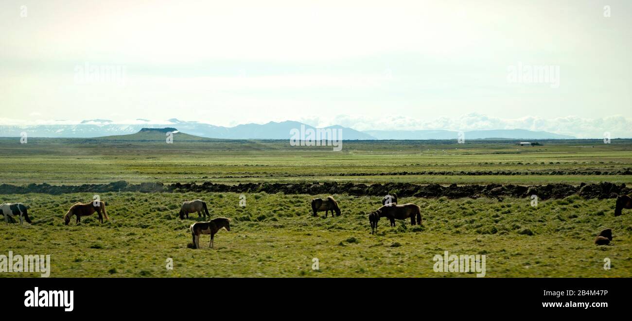 Pferde In Einem Grunen Feld Von Gras Auf Island Landschaft Im Landlichen Raum Horizontale Schuss Lizenzfreie Fotos Bilder Und Stock Fotografie Image 42571641