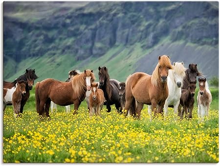 Artland Leinwandbild Wandbild Bild Auf Leinwand 80x60 Cm Wanddeko Pferd Wildpferde Herde Islander Island Tiere Natur Landschaft Blumen T1sl Amazon De Kuche Haushalt