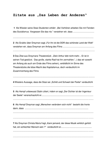 Zitate Aus Das Leben Der Anderen Teaching Resources